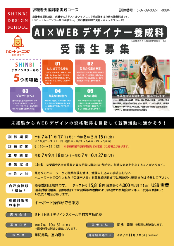 求職者支援訓練「AI×WEBデザイナー養成科 」の受講者の募集をしております!!